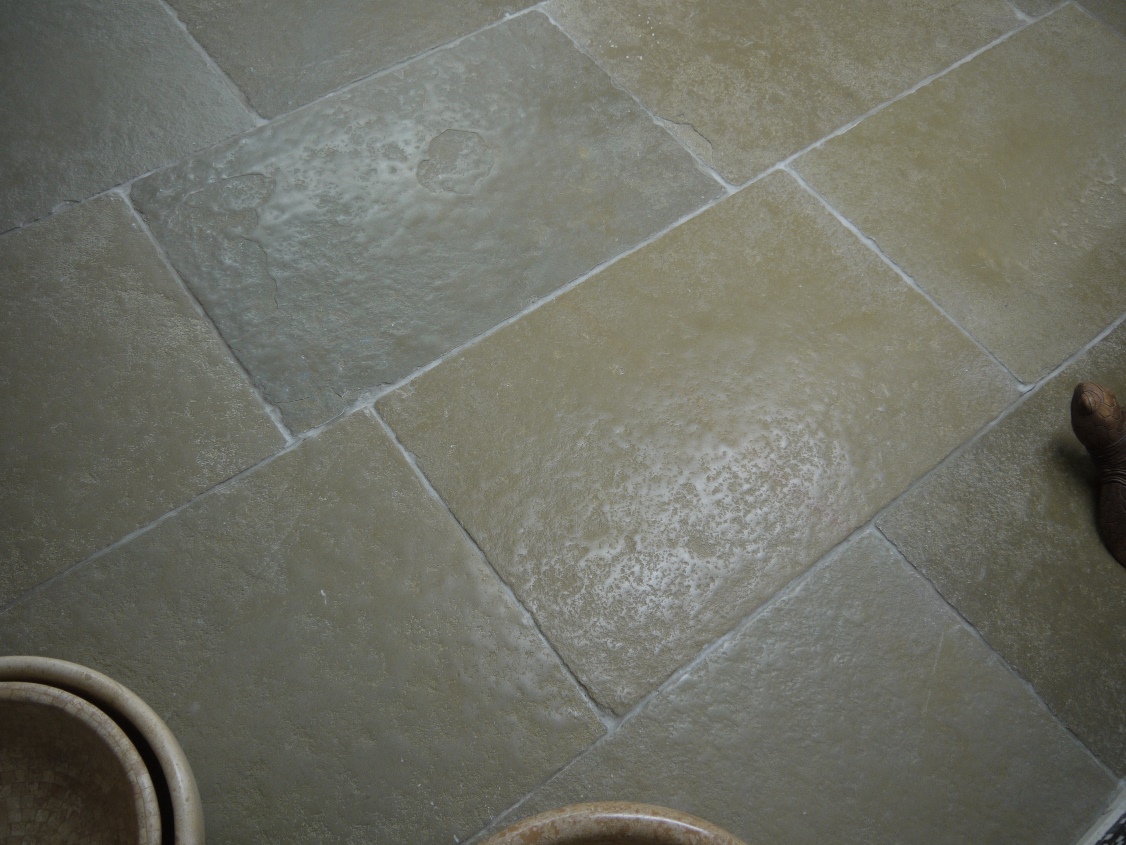 Mount Grace Priory Limestone is made up of earthy greens and ochre yellow tones. It has an historical feel like it has been around for hundreds of years with a slightly undulating, worn surface and a rustic edge. The stone has been heavily brushed to eliminate the look of a newly quarried stone but retains a non-slip finish.